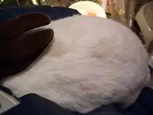 The Himalayan rabbit is a rare medium-sized breed of rabbit easily mistaken for the Californian rabbit.[1] The body is white with colored points, recognized colors are black, blue, chocolate and lilac.