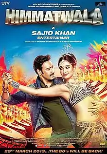 Himmatwala (transl. The brave one) is a 2013 Indian Hindi-language action comedy film written and directed by Sajid Khan and jointly produced by UTV Motion Pictures and Vashu Bhagnani. The film features Ajay Devgn and Tamannaah in the lead roles. Set in 1983, it is an official remake of the 1983 film of the same name by K. Raghavendra Rao, which was, in turn, a remake of the 1981 Telugu film Ooruki Monagadu. The film was released on 29 March 2013.[3][4] The film marks Tamannaah's comeback to Bollywood after she debuted in the 2005 film Chand Sa Roshan Chehra.
