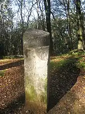 Among the artefacts found was an old milestone that was discarded during the rebuilding of the road in 1826. The 1811 Ordnance Survey map was used to identify the original position of the stone where it has since been re-erected. The pre-1826 road is now a pedestrian way to Gibbet Hill.[32] Other artefacts of archaeological interest included two lime kilns found near the Thursley side of the works dating from the 18th or 19th century. It is probable that lime produced by the kilns used limestone or chalk from Petersfield 25 kilometres (16 mi) away and would have been used to counteract the acid nature of the soil.[8]
