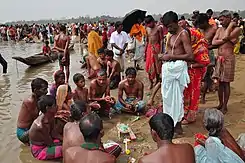 In Bangladeshi Hinduism ritual bathing, vows, and pilgrimages to sacred rivers, mountains, and shrines are common practices.[10] An ordinary Hindu will worship at the shrines of Muslim pirs, without being concerned with the religion to which that place is supposed to be affiliated.[10][14] Hindus revere many holy men and ascetics conspicuous for their bodily mortifications.[10] Some believe that they attain spiritual benefit merely by looking at a great holy man.[10] Durga Puja, held in September–October, is the most important festival of Bangladeshi Hindus and it is widely celebrated across Bangladesh. Thousands of pandals (mandaps) are set up in various cities, towns, and villages to mark the festival. Other festivals are Kali Puja, Janmashtami, Holi, Saraswati Puja, Shivratri and Rathayatra, the most popular being the century-old Dhamrai Rathayatra.