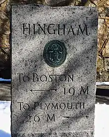 {{cite journal}}: Cite journal requires|journal=(help) - "Hingham, Massachusetts". Hingham, Massachusetts. Retrieved August 25, 2012.