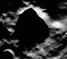 Hinshelwood is deformed, and its rim contains unique radial structures caused by the shockwave and gas cloud of the impact which created the crater.[1] The southern rim of Hinshelwood, which points towards the lunar equator, receives a relatively high level of light, making it a potential landing site for future lunar exploration.[2]