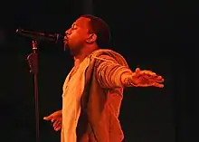 West has been spoken out against social injustice outside of music as well. He infamously made headlines in 2005 for his remark "George Bush doesn't care about black people" during a live broadcast relief concert for the victims of Hurricane Katrina. West's comment is usually attributed to his frustration with Bush and FEMA's perceived slow response to the disaster while the majority-black residents of urban New Orleans suffered.[26] That same year, West spoke out against homophobia in hip hop culture during an MTV interview.[27]