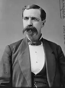 In 1874, Richard Cunningham McCormick decided not to run for reelection as Arizona Territory's delegate in the United States House of Representatives.[3] The territory's Democrats met in Phoenix in May to select nominees for the upcoming election. The two candidates for the Territorial Delegate were Stevens and John A. Rush. With delegates from Yavapai and Yuma counties not yet arrived, the convention selected Rush by an 8 to 7 vote. Rush refused to accept the nomination and withdrew as a candidate on July 24, 1874.[7] The election then became a five-way race with all candidates running as Independents. Stevens and Charles T. Hayden favored Democratic policies while Curtis Coe Bean and John Smith advocated those of the Republican party.[7] The fifth candidate, stagecoach driver David G. Beardsley, ran as the "workingman's candidate".[8] Stories of the day indicate Stevens enlisted the territory's gamblers to aid his campaign. To do this he is said to have loaned them money to bet on his victory in the election, allowing the gamblers to keep any winnings and asking only for the sum of the wagers to be returned.[4] The election also saw 650 questionable votes for Bean thrown out by the Yavapai County Board of Supervisors.[8] Final results were 1,442 for Stevens, 1,076 for Bean, 638 for Smith, 13 for Hayden and 7 for Beardsley.[7]