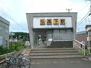Hirokōshita Station (弘高下駅, Hirokōshita-eki) is a railway station in the city of Hirosaki, Aomori Prefecture, Japan, operated by the private railway operator, Kōnan Railway Company