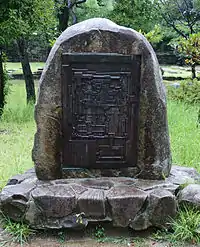 Within the castle walls, three trees survived the atomic bombing: a eucalyptus and a willow at approximately 740 m from the hypocenter,[3] and a holly approximately 935 m from the hypocenter.[4] Both specimens are preserved just beyond the Honmaru. Also located inside the Honmaru is the concrete bunker from which the first radio broadcast out of Hiroshima following the atomic bombing was made.