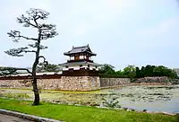 Hiroshima Castle (広島城, Hiroshima-jō), sometimes called Carp Castle (鯉城, Rijō), is a castle in Hiroshima, Japan that was the residence of the daimyō (feudal lord) of the Hiroshima Domain. The castle was originally constructed in the 1590s, but was destroyed by the atomic bombing on August 6, 1945. The castle was rebuilt in 1958, a replica of the original that now serves as a museum of Hiroshima's history before World War II.