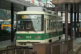 ![]() A Hiroden streetcar at Hiroden Hiroshima Station in Hiroshima, Japan | |