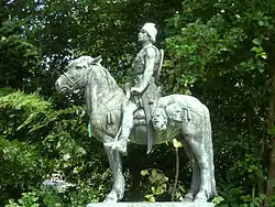 There is a rectangular, cobbled space in front of the museum. On its left hand side, stands Carl Johan Bonnesen's equestrian state A barbarian. A path to the right of the museum provides access to Ørsted Park close to the rear side of the National Gallery.
