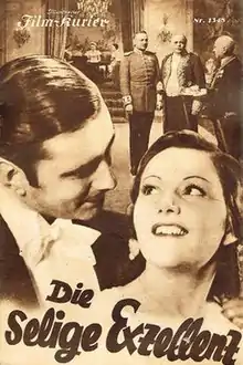 His Late Excellency (German: Die selige Exzellenz) is a 1935 German historical comedy film directed by Hans H. Zerlett and starring Arthur Schroder, Rose Vollborn, and Hansjoachim Büttner.[1] Following the death of the ruler of a German principality in the nineteenth century, intrigue breaks out in the struggle to succeed him.