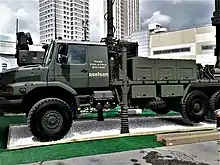 Hisar-O (Turkish: Orta İrtifa Hava Savunma Füze Sistemi) is a vertical launched medium-range SAM system mounted on a Mercedes-Benz Zetros chassis.[7][33]