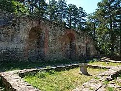 Hisarlaka Fortress is an ancient and medieval fortress occupying a hill at 2 kilometres (1.2 mi) to the south-east of Kyustendil, in what is now Bulgaria. Originally constructed by the Romans around 400 AD, it was among the most important castles of the Bulgarian Empire in the Middle Ages before it was partially destroyed by the Ottomans in the 15th century.
