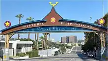 On July 31, 2002, the City of Los Angeles designated Historic Filipinotown with the following boundaries: on the east by Glendale Boulevard, on the north by the 101 Freeway, on the west by Hoover Street, and on the south by Beverly Boulevard.[3] The area, located in Council District 13, had commonly been referred to as the "Temple-Beverly Corridor". Both the Department of Public Works and the Department of Transportation were instructed in install signage to identify "Historic Filipinotown". Neighborhood signage was installed at the intersection of Temple Street and Hoover Street[4] and Beverly Boulevard and Belmont Avenue.[5] In 2006, Historic Filipinotown signage was installed along the 101 Freeway at the Alvarado Street exit.[6]