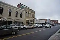 Meridian Downtown Historic District runs from the former Gulf, Mobile and Ohio Railroad tracks north to 6th St between 18th and 26th Avenues, excluding Ragsdale Survey Block 71 on the northeastern tip of the district. The district was created in 2005 to combine two older districts, Meridian Urban Center Historic District and Union Station Historic District.[3] Meridian's city council voted to combine these two districts and the nine blocks between them into one large district, which was added to the National Register of Historic Places on January 16, 2007.[2]