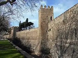 The first raids by the Germanic tribes started around 250, and the fortifications of the city were substantially improved in the later years of the 3rd century under Claudius II.[38][39] The new double wall was at least two metres high, up to eight metres in some parts, and was punctuated by seventy-eight towers measuring up to eighteen metres high. The new fortifications were the strongest in the Roman province of the Tarraconensis, and would increase the importance of Barcino compared to Tarraco.[28]