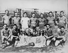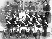 Although Boca Juniors won its first official title in 1919 (the Primera División championship),[3] the first milestone in the history of the club came in 1925 with the successful tour to Europe, where Boca Juniors played 19 matches, winning 15 of them.[4] That tour was the first time an Argentine team played abroad, and it helped Boca considerably increase its number of fans in Argentina. Besides, the term "player number 12" was used for the first time during that tour.[5]