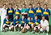 Boca Juniors won its first title ever (the 1919 Primera División championship). The team won all the matches played, scoring 29 goals and only conceding 5.[47] The starting line-up for the last round was: Tesoriere; Cortella, Ortega; López, Busso, Elli; Calomino, Bozzo, Garasini, Martín, Miranda. It was played at Boca Juniors stadium, where Boca beat Sp. Almagro 4–0 (Martín and Miranda, two goals each).[48][9]