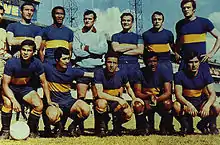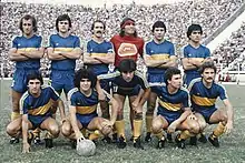 The following tournament (1976 Nacional) Boca played a historic final match against arch-rival River Plate, winning 1–0 through a direct free kick goal scored by Rubén Suñé. Boca Juniors line-up was Gatti; Pernía, Sá, Mouzo, Tarantini; Ribolzi, Suñé, Veglio; Mastrángelo, Taverna, Felman (Zanabria).[57] It was the only final played by both Superclásico teams up to present days.[58]