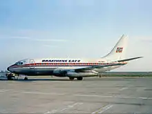 Starting with the delivery of the F-28s and 737s, all planes were named after Norwegian kings. The last three F-27s were also given such names.[48] During the 1970s, Braathens SAFE took delivery of eleven 737s, supplementing the four F-28s. The third delivered, LN-SUA, had a cargo door on the side, making it ideal for cargo flights. The three planes delivered in 1979 had extended range tanks making direct flights to the Canary Islands possible. In 1979, the company started looking into possible replacements for their fleet, considering larger aircraft.[49]