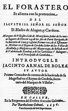 - El Forastero, Cagliari, Antonio Galcerino, 1636, edited again by María Dolores García Sánchez da CUEC/CFS, Cagliari 2011
