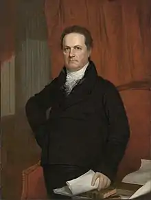 On May 5, 1784, the Regents held their first meeting, instructing Treasurer Brockholst Livingston and Secretary Robert Harpur (who was Professor of Mathematics and Natural Philosophy at King's) to recover the books, records and any other assets that had been dispersed during the war, and appointing a committee to supervise the repairs of the college building. In addition, the Regents moved quickly to rebuild Columbia's faculty, appointing William Cochran instructor of Greek and Latin.[21] In the summer of 1784, after the legislature passed the act restoring the college, Major General James Clinton, a hero of the revolutionary war, brought his son DeWitt Clinton to New York on his way to enroll him as a student at the College of New Jersey. When James Duane, the Mayor of New York and a member of the Regents, heard that the younger Clinton was leaving the state for his education, he pleaded with Cochran to offer him admission to the reconstituted Columbia. Cochran agreed — partly because DeWitt's uncle, George Clinton, the Governor of New York, had recently been elected Chancellor of the College by the Regents — and DeWitt Clinton became one of nine students admitted to Columbia in the year 1784.[21]