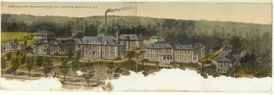 When classes started in 1909, ECTTS has six buildings.[9] These buildings included two dormitories: Jarvis and Wilson, Administration Building, Power Plant, Infirmary, and Refectory (Dining Hall).[7] Tuition was free for all students who pledged to teach for two years, and $45.00 for all other students. In total, 104 women and 19 men accompanied the 11