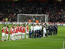 | Partizan's starting XI under coach Aleksandar Stanojević in their UEFA Champions League group stage match with Arsenal on 8 December 2010.[42] |