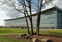 Finally, on January 12, 1987, the huge Kerr Mill Complex, also in the city's East End along South Watuppa Pond, was destroyed in a massive inferno that began in the historic 1899 Thread Mill on Eastern Avenue and spread along the entire complex. The mills had been occupied by many companies, and over 900 people suddenly found themselves without jobs. The Kerr Mill site was redeveloped in the late 1990s, and in 2001 the Advanced Technology & Manufacturing Center of UMass-Dartmouth opened its doors at this location.[24] More recently, the Meditech building opened on the western side of the property, with a garage built on the site of the 1899 mill in front of the building.