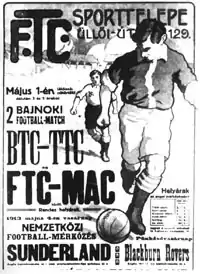 The 1903 season of the Hungarian League was won by Ferencváros.[8] Two years later in 1905, Ferencváros became Hungarian champions for the second time.[9]