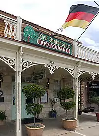 On November 22, 1963, when Lyndon Johnson became President of the United States, global attention focused upon the Texas White House at nearby Stonewall. The Nimitz Hotel served as headquarters for the media who intertwined their favorable impressions of the area with their reporting on the President.[63] The Johnsons attended church in Fredericksburg. Dignitaries were escorted around Fredericksburg by the President. West Germany Chancellor Ludwig Erhard visited Fredericksburg in 1963 and was greeted with "Herzlich Wilkommen" and heard a sermon in German at Bethany Lutheran Church.[64][65][66] Throughout LBJ's vice presidency and presidency, Fredericksburg prospered from the tourism trade, and it changed from an isolated community into one catering to the tourist dollar.[67]