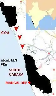 The attacks of the Maratha Empire on Goa, during the mid 17th century, was also a cause of migration. In 1664, Shivaji, the founder of the Maratha empire, attacked Kudal, a town north of Goa, and began his campaign for Goa. After Shivaji's death on 3 April 1680, his son Sambhaji ascended to the throne.[8] The onslaught of Sambhaji, along the northern territories of Goa, drove many Christians from their homelands, and most of them migrated to South Canara. This migration is referred to as the "Third Wave of Migration". During the later years, 1680-1707, the migration slowed because of the Mughal-Maratha wars. Some 10,000 Christians returned to Goa.[8] From the Bardez district of Goa, Jesuit priests estimated that 12,000 Christians migrated to the South of Goa between 1710–1712. A Goa Government report of 1747 recorded that around 5,000 Christians fled to South Canara from the Bardez and Tiswadi districts of Goa during the invasion of the Marathas.[8] It was estimated that during the Maratha raids on Goa, about 60,000 Christians migrated to South Canara.[12]