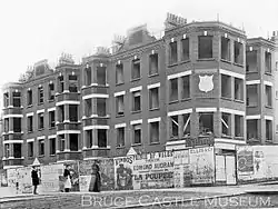 Whilst Harringay was luckier than some areas of London during World War II, it did not survive unscathed. A number of V-1 and V-2 bombs fell in Harringay, including one on Warwick Gardens, which destroyed or damaged a number of houses and the 'Ever Ready' factory that stood on the corner of St Ann's Road and Warwick Gardens. Some of the Ladder roads were also affected by attempts to bomb the railway around Hornsey station. RAF aerial reconnaissance shows a path of bomb damage across the roads near the station heading towards the railway.[25] This included the area at the western end of Fairfax and Falkland Roads where the damaged houses were never rebuilt. The area is now a small park.