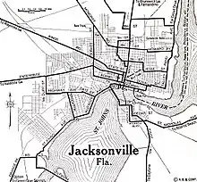 Jacksonville's prominence as a winter resort was dealt another blow by major yellow fever epidemics in 1886 and 1888. During the second one, nearly ten percent of the more than 4,000 victims died, including the city's mayor.[20] In the absence of scientific knowledge concerning the cause of yellow fever, nearly half (10,000 out of 25,000) of the city's panicked residents fled despite the imposition of quarantines. Inbound and outbound mail was fumigated in an effort to reduce contagion. Jacksonville's reputation as a healthful tourist destination suffered. The African-American population did not appear to catch the disease, leading the panicked population into erroneously believing that the black residents were "carriers" of the Yellow Fever. In fact, blacks had immunity from catching the disease earlier, as children.[21]