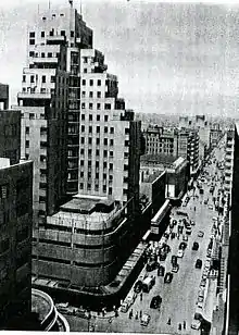 In the 1950s the Electricity Supply Commission (Eskom) decided to move its headquarters from the centre of town to Braamfontein. ESCOM acquired a whole block fronting on Smit, Harrison, Loveday and Wolmarans Streets, a site formerly occupied by a dairy. The cost of the site was £261 220 and the building cost was £1 854 620. The building was completed in 1958 and was 17 storeys high. It was called Eskom Centre.[99]
