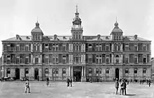 Just north of Jeppestown is Doornfontein, then known as a 'classy' suburb, where professional and commercial men lived. Many Jews lived there as well.[24] Their children attended school. The first English language school in Johannesburg was started by the Holy Family Sisters. In 1887 they opened a school in Fox Street, but it grew so fast that they had to move to bigger premises in End Street, next to Doornfontein.[25]