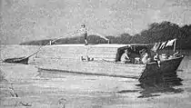 During the 1820s and 1830s, state legislators from East Tennessee continuously bickered with legislators from Middle and West Tennessee over funding for road and navigational improvements. East Tennesseans felt the state had squandered the proceeds from the sale of land in the Hiwassee District (1819) on a failed state bank, rather than on badly needed internal improvements.[25] It wasn't until 1828 that a steamboat, the Atlas, managed to navigate Muscle Shoals and make it upriver to Knoxville. River improvements in the 1830s allowed Knoxville semi-annual access to the Mississippi, though by this time the city's merchants had shifted their focus to railroad construction.[25]