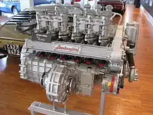 Prior to founding his company, Lamborghini had commissioned the engineering firm Società Autostar to design a V12 engine for use in his new cars. Lamborghini wanted the engine to have a similar displacement to Ferrari's 3-litre V12; however, he wanted the engine to be designed purely for road use, in contrast to the modified racing engines used by Ferrari in its road cars. Autostar was led by Giotto Bizzarrini, a member of the "Gang of Five" of Ferrari engineers, who had been responsible for creating the famous Ferrari 250 GTO, but left the company in 1961 after founder Enzo Ferrari announced his intention to reorganise the engineering staff.[1] The engine Bizzarrini designed, known today as the Lamborghini V12, had a displacement of 3.5 litres, a 9.5:1 compression ratio, and a maximum output of 365 PS (268 kW; 360 hp) at 9,800 rpm.[2] Lamborghini was displeased with the engine's high revolutions and dry-sump lubrication system, both characteristic of the racing engines he specifically did not wish to use; when Bizzarrini refused to change the engine's design to make it more "well-mannered", Lamborghini refused to pay the agreed-upon fee of 4.5 million Italian lire (plus a bonus for every unit of brake horsepower the engine could produce over the equivalent Ferrari engine).[2][3] Lamborghini did not fully compensate the designer until ordered to do so by the courts,[3] a terrific irony considering variants of Bizzarrini's V12 design were used by Lamborghini automobiles for nearly half a century, from 1963 to 2010.
