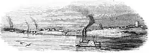 The city grew quickly as Mormons gathered. At its height Nauvoo's population was as large as Quincy's or Springfield's, although it remained smaller than contemporary Chicago, still in its infancy.[16] Many new residents came from the British Isles, as a result of a successful LDS mission established there.[17] The Latter Day Saints published two newspapers in the city, the religious and church-owned Times and Seasons and the secular and independently owned Wasp (later replaced by the Nauvoo Neighbor). Although it mostly existed on paper, the University of Nauvoo was established, with Bennett as chancellor.