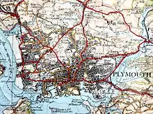 It was once thought, based on a reference to TAMARIS OSTIA ('Port of Tamar') in Ptolemy's Geographia, that tin brought from Dartmoor via the River Plym was traded with the Phoenicians here, but this theory was discounted by Malcolm Todd in 1987.[5] However, evidence of copper ingots and copper scrap in contexts dating from the late Bronze Age to the Middle Iron Age have been found at Mount Batten, a promontory settlement jutting into Plymouth Sound, which was one of the main ports of trade in Prehistoric Britain.[6][7]