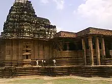 The Kakatiya dynasty rose to prominence in the 11th century with the decline of the Chalukyas. By the early 12th century, the Kakatiya Durjaya clan declared independence and began expanding their kingdom.[40] By the end of the century, their kingdom had reached the Bay of Bengal and it stretched between the Godavari and the Krishna rivers. The empire reached its zenith under Ganapatideva who was its greatest ruler, responsible for uniting the upper and lower regions of eastern Deccan that spoke the Telugu language, for the first time. At its largest, the empire included most of modern-day Andhra Pradesh, Telangana and parts of Odisha, Tamil Nadu, Chhattisgarh, Maharashtra and Karnataka. Ganapatideva was succeeded by his daughter Rudramba who became the famous warrior-queen Rudrama Devi. The Kakatiya dynasty lasted for three centuries, but their existence can be dated back to the 7th century as per inscriptions although they only served as local chieftains to Chalukyas and Rashtrakutas. Warangal was their capital which was founded in the 12th century. Marco Polo visited Warangal in 1289 and wrote extensively on the kingdom, the city, the queen Rudrama Devi, the prosperity and wealth of the kingdom and the way people live. By the early 14th century, the Kakatiya dynasty attracted the attention of the Delhi Sultanate under Alauddin Khalji. Despite defeating the first attempt in 1303, it paid tribute to Delhi for a few years from 1310 after a successful siege by Malik Kafur and was besieged again in 1318 by Khusrau Khan. But they refused to pay tribute to the new Tughluq regime in 1320, which prompted annexation of the Telugu country by Sultan Ghiyath al-Din Tughluq. The Kakatiyas were eventually conquered by the forces of Muhammad bin Tughluq in 1323.[41][42][43][44] The Kakatiyas were well-versed in administrative duties, military affairs, social policy and diplomatic affairs, developing a unique social structure which differed from other medieval Hindu kingdoms of the subcontinent. Their encouragement of cultural influences from the neighbouring Andhra region in Telangana and vice versa ushered in an era of prosperity and standard of living in both regions. It was made possible due to extensive building of irrigation tanks, artificial lakes and other kinds of small and large reservoirs, interconnected through linking techniques, which helped in converting the dry, arid and rugged areas of Kakatiya territory into a strong, wealthy and stable abode for people who migrated and settled in Telangana. The system of employing capable military officers (nayakas) from any background as part of earning new loyalists for the kings was pursued by them first and then implemented by Vijayanagara Empire. They were egalitarian rulers who despite adhering to the varna system rewarded those who served the kingdom with loyalty. Their encouragement of inland and maritime trade with safety incentives and exemptions for merchants who faced loss in their sea-borne journey greatly developed commerce with other nations and faraway kingdoms, bringing vast amounts of riches. The Kakatiyan legacy is preserved in the form of arts, literature and architecture as well as reservoirs which survive in Telangana. Their patronage of artisans, poets and musicians, also followed by subordinate kings, led to an extensive growth of Telugu language, customs and the overall culture assosciated with it. Their architectural legacy, borrowed from Western Chalukyas and later developing it into a distinctive style identified with the kingdom, is preserved in the form of forts, temples and gateways. Notable among these are Warangal Fort, Kakatiya Kala Thoranam, Thousand Pillar Temple, Ramappa Temple, Kota Gullu, Elgandal Fort, Medak Fort and the temples at Pillalamarri in Suryapet. They built large reservoirs like the Pakhal Lake, Ramappa Lake, Bhadrakali Lake and Laknavaram Lake along with other bigger and smaller yet significant ones. They were also very likely to be the original holders of the Koh-i-Noor diamond which was mined in Kollur, Andhra Pradesh and the existence of diamond trade and markets were also mentioned in the writings of Marco Polo.