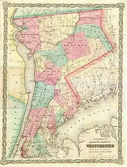 Westchester County was one of the original twelve counties of the Province of New York, created by an act of the New York General Assembly in 1683. At the time it also included present day Bronx County, which included the original Town of Westchester and portions of Yonkers, Eastchester, and Pelham.
