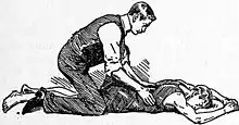 The Shafer method[5] became popular after it was described by Edward Albert Sharpey-Schafer (1850 – 1935) in 1904. That in turn was replaced by the Holger Nielsen technique, first described in 1932 by Danish triple Olympic medallist Holger Nielsen (1866 – 1955).[6][30][31] The Shafer method and the Holger Nielsen technique were both manual methods, similar to Silvester's method except that the victim was laid in the prone instead of the supine position.[5][30]