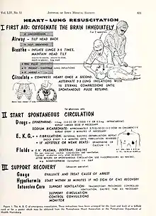 - Ad Hoc Committee on Cardiopulmonary Resuscitation of the Division of Medical Sciences, National Academy of Sciences—National Research Council (1966). "Cardiopulmonary resuscitation". The Journal of the American Medical Association. 198 (4): 138–45, 372–79. doi:10.1001/jama.1966.03110170084023. PMID 5223538.
