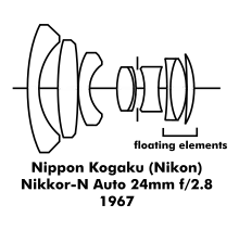 - Kouichi Oshita, "The First Lens equipped with the Close-Range-Correction Mechanism: Tale 14: NIKKOR-N Auto 24 mm f/2.8," from http://imaging.nikon.com/products/imaging/technology/nikkor/n14_e.htm Archived 2009-04-13 at the Wayback Machine retrieved 28 February 2006.