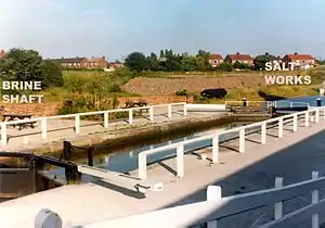 In the 14th century the area around the current Wych House Lane was occupied by many salt houses.[9] In 1892 a new salt works was established to the north of Wych House Lane, owned by the Dairy and Domestic Company.[8] In common with many of the works this was taken over by Henry Seddon in the early 1900s. The works continued to be used until around 1969, and were used by the town council as a depot until the 1980s.[8] The land is currently a green field running down to the canal.