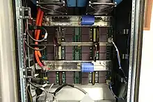 The SX-3/44R was announced by NEC Corporation in 1989 and a year later earned the fastest-in-the-world title with a four-processor model.[25] However, Fujitsu's Numerical Wind Tunnel supercomputer used 166 vector processors to gain the top spot in 1994. It had a peak speed of 1.7 gigaflops per processor.[26][27] The Hitachi SR2201 obtained a peak performance of 600 gigaflops in 1996 by using 2,048 processors connected via a fast three-dimensional crossbar network.[28][29][30]