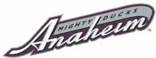 The Mighty Ducks of Anaheim were founded in 1993 by The Walt Disney Company. The franchise was awarded by the NHL in December 1992, along with the rights to a Miami team that became the Florida Panthers. An entrance fee of $50 million was required, half of which Disney paid to the Los Angeles Kings as compensation for sharing the Southern California NHL market.[1] On March 1, 1993, at the brand-new Anaheim Arena – located a short distance east of Disneyland and across the Orange Freeway from Anaheim Stadium (which Disney was a minority owner) – the team received its name, inspired by the 1992 Disney movie The Mighty Ducks, based on a group of misfit kids who turn their losing youth hockey team into a winning team.[2] Disney President Michael Eisner had already said on the December press conference that the film's success served as "our market research".[3] As a result of the name adoption, the arena was named "The Pond",[2] and Disney subsequently made an animated series called Mighty Ducks, featuring a fictional Mighty Ducks of Anaheim team consisting of anthropomorphized ducks led by the Mighty Duck Wildwing.[4]