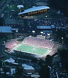 Cleveland's first regular-season game took place September 6, 1946 at Cleveland Municipal Stadium against the Miami Seahawks before a then-record crowd of 60,135.[23] That contest, which the Browns won 44–0, kicked off an era of dominance. With Brown at the helm, the team won all four of the AAFC's championships from 1946 until its dissolution in 1949, amassing a record of 52 wins, four losses and three ties.[24] This included the 1948 season, in which the Browns became the first unbeaten and untied team in professional football history.[25] The Browns had few worthy rivals among the AAFC's eight teams, but the New York Yankees and San Francisco 49ers were their closest competition.[26]