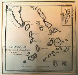 Philip V of Macedon, after the Second Punic War, turned his attention to the Cyclades, which he ordered the Aetolian pirate Dicearchus to ravage[58] before taking control and installing garrisons on Andros, Paros and Kythnos.[59]