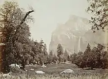 Hutchings took photographer Charles Leander Weed to Yosemite Valley in 1859; Weed took the first photographs of the valley's features, which were presented to the public in a September exhibition held in San Francisco.[18] Hutchings published four installments of "The Great Yo-semite Valley" from October 1859 to March 1860 in his magazine and re-published a collection of these articles in his Scenes of Wonder and Curiosity in California, which remained in print into the 1870s.[26][28]